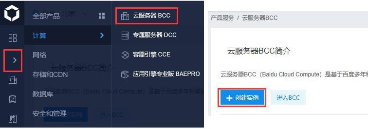 點(diǎn)擊【云服務(wù)器BCC】,點(diǎn)擊【創(chuàng)建實(shí)例】,進(jìn)入[選擇云服務(wù)器]頁面。