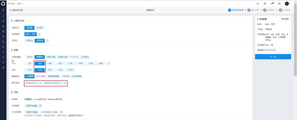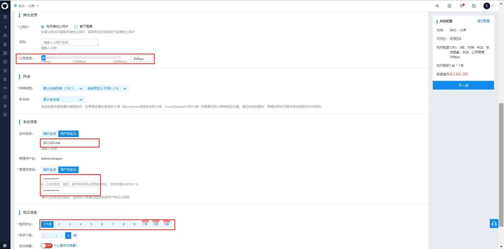 購買信息:選擇購買時(shí)長和數(shù)量。設(shè)置完所有信息后,點(diǎn)擊【下一步】。