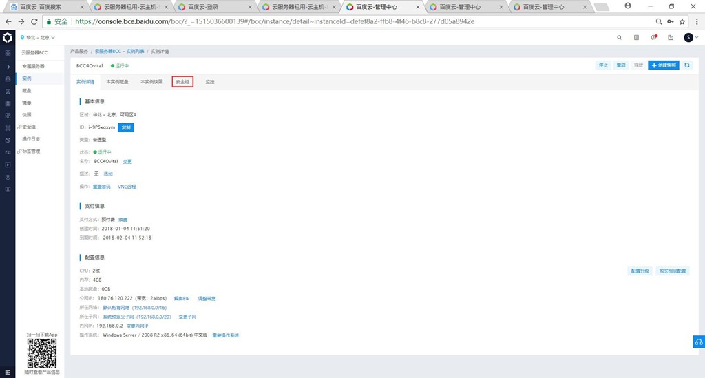 (1)登陸百度云,進(jìn)入到控制臺(tái),點(diǎn)擊【云服務(wù)器】,顯示實(shí)例列表,點(diǎn)擊購買的實(shí)例,進(jìn)入[實(shí)例詳情]頁面。