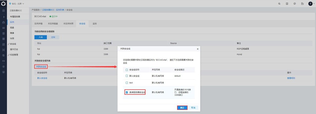 選購成功幾分鐘后,在控制臺(tái)的【云服務(wù)器BCC/實(shí)例】中可以看到剛剛采購的云服務(wù)器已處于運(yùn)行中,現(xiàn)在可以進(jìn)行配置了。