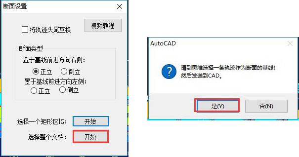 (4)選擇整個(gè)文檔:可將CAD窗口當(dāng)前顯示的文檔內(nèi)所有斷面圖紙送到奧維中。