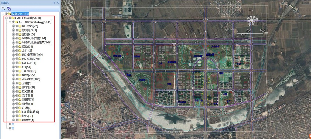 完成后,在奧維PC端的[收藏夾]中會(huì)新建一個(gè)【CAD工作空間】文件夾保存發(fā)送過(guò)來(lái)的數(shù)據(jù),并正常顯示在地圖上。