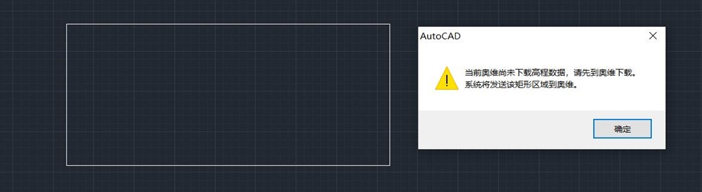 ☆說(shuō)明:若用戶還未在奧維中下載該區(qū)域的高程數(shù)據(jù),會(huì)彈出相關(guān)提示,如下圖所示。您先前往奧維疊加高程,再返回到CAD中下載高程,即可。