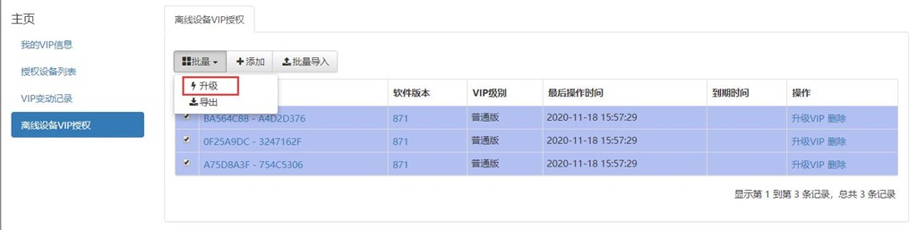 導(dǎo)入完成后,將所有需要登錄企業(yè)服務(wù)器的離線機器升級到需要的VIP級別,如VIP。