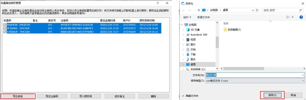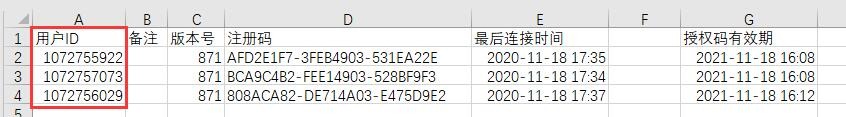 在管理控制臺的[批量離線授權(quán)管理]窗口,將離線機器的用戶ID導(dǎo)出到表格。