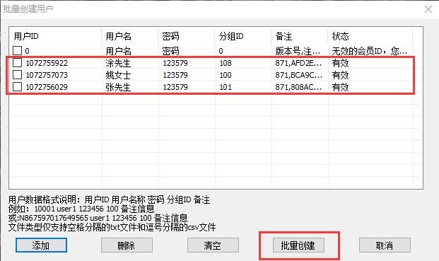 • 在【用戶ID】后面增加【用戶名】【密碼】和【分組ID】字段