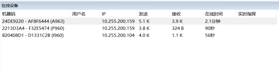 客戶端匿名登錄企業(yè)服務(wù)器后,返回管理控制臺,在管理控制臺[在線設(shè)備]窗口中顯示已經(jīng)匿名登錄企業(yè)服務(wù)器的機器。