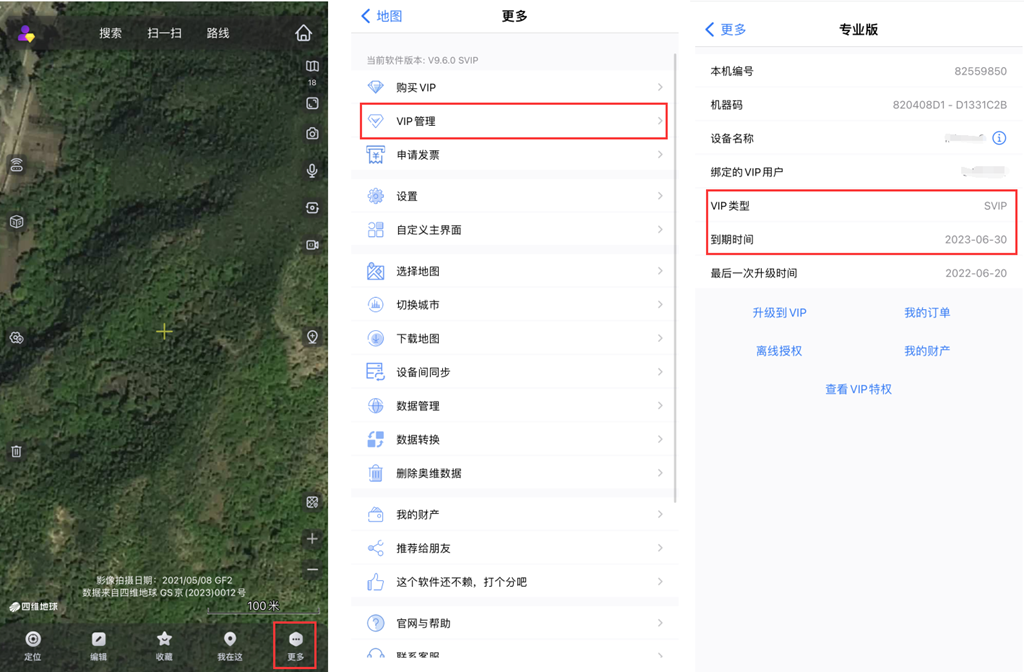 在離線手機的奧維互動地圖中,您可以點擊【更多】→【VIP管理】查看VIP等級和服務(wù)到期時間。