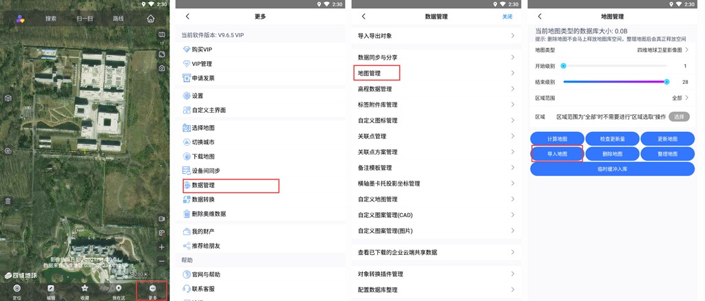 在奧維Android/iOS版主界面中,點(diǎn)擊【更多】,點(diǎn)擊【數(shù)據(jù)管理】,點(diǎn)擊【地圖管理】,進(jìn)入[地圖管理]頁面。