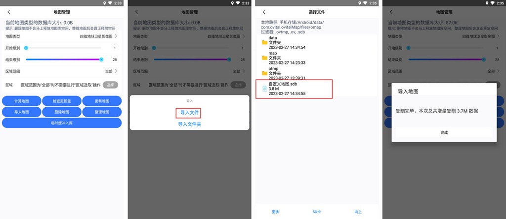 完成導(dǎo)出圖層和地圖數(shù)據(jù)后,就將導(dǎo)出的ovmap文件和sdb文件拷貝或者發(fā)送到Android/iOS設(shè)備,二者缺一不可。