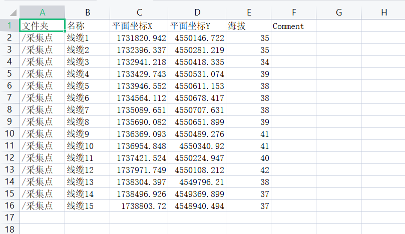輸出條目:用戶可根據(jù)實際需要選擇需要輸出的屬性條目,本教程以導(dǎo)出文件夾、名稱、平面坐標(biāo)、海拔、備注為例。