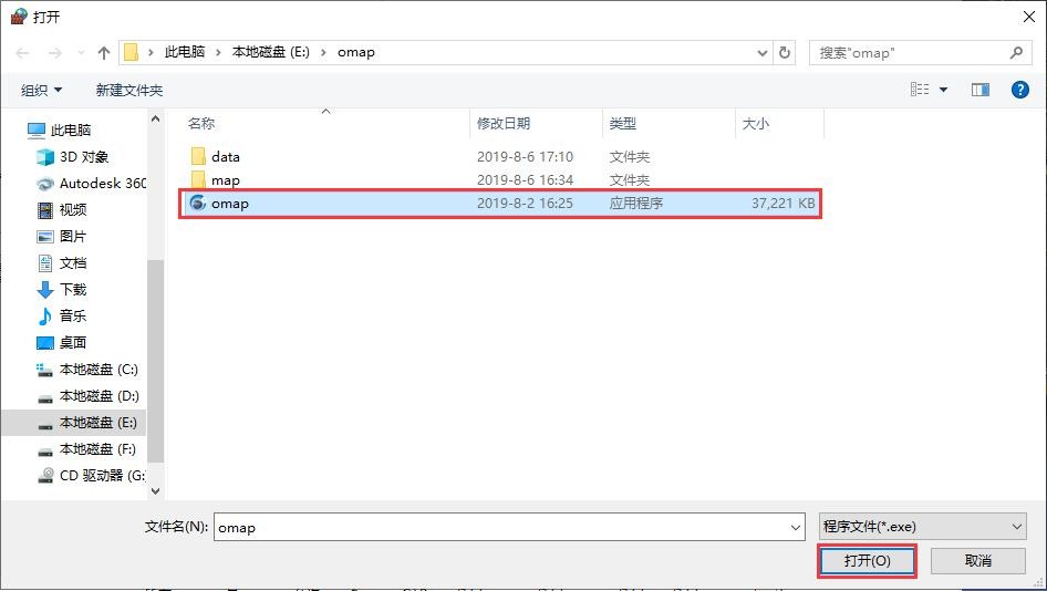 找到奧維的根目錄,選擇【omap.exe】文件,點(diǎn)擊【打開(kāi)】。