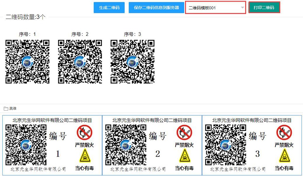 選擇二維碼打印模板,點擊【打印二維碼】,可按二維碼模板生成打印版的二維碼。