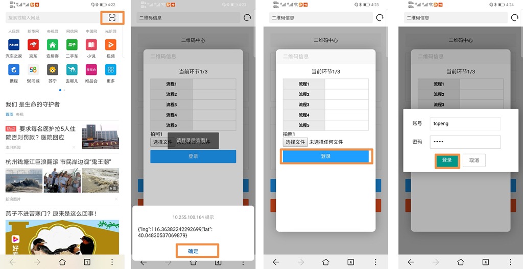 打開手機自帶的瀏覽器,點擊“掃描二維碼”按鈕,系統(tǒng)會獲取手機當前的位置信息,點擊【確定】。