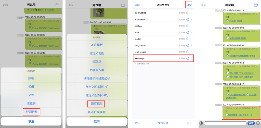 點擊[+],在[發(fā)送對象]頁面,點擊[發(fā)送配置]→[網(wǎng)頁插件],系統(tǒng)自動進入選擇文件夾頁面,選擇需要發(fā)送的網(wǎng)頁插件文件夾,點擊[>],即可。