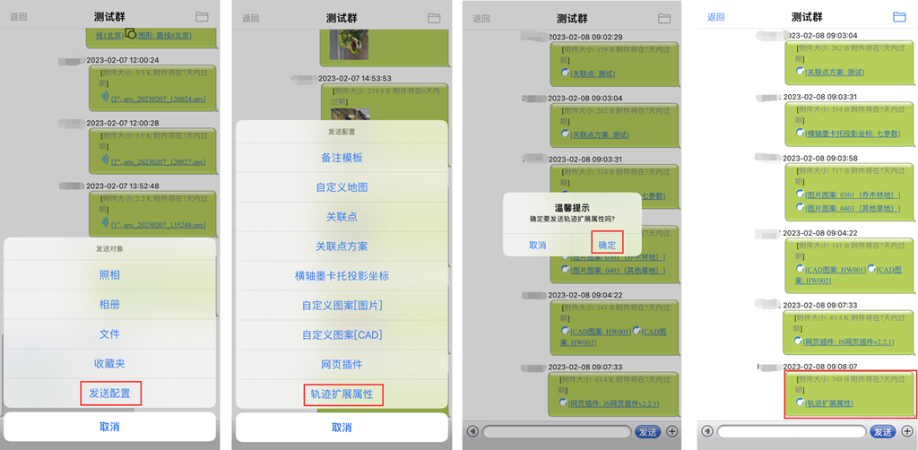 群成員可將設(shè)備上的軌跡擴展屬性發(fā)送到群中,其他成員可下載使用該軌跡擴展屬性。