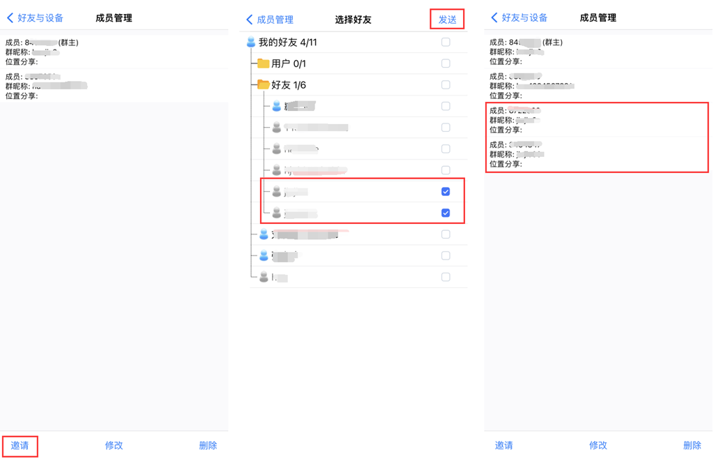 群成員可通過群將自己的位置信息及實時軌跡分享給群中的其他成員。