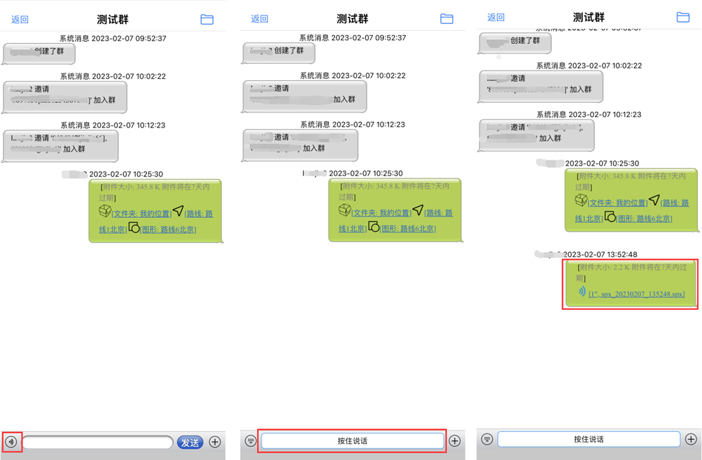 對于語音,在會話界面,點擊左下角的9按鈕,按住說話,錄音完成后釋放,即可發(fā)送語音消息。