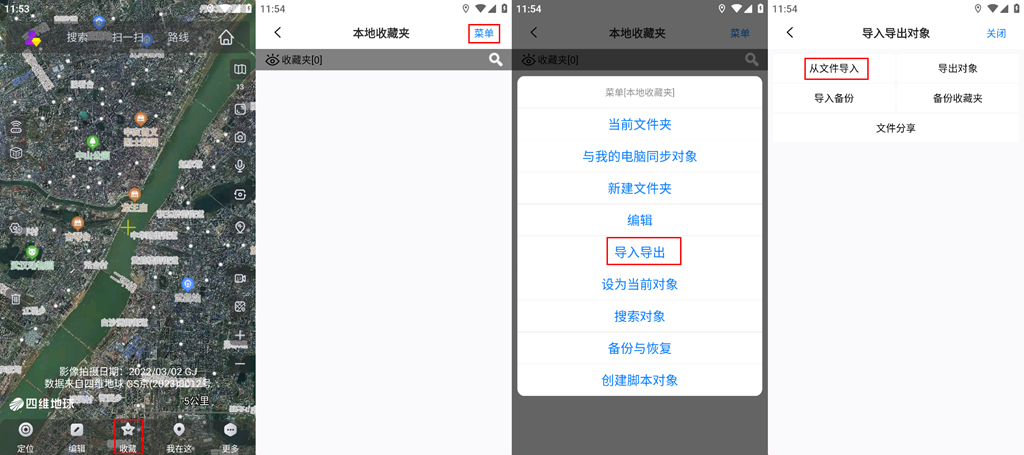 在奧維手機(jī)端,點(diǎn)擊【收藏】,點(diǎn)擊【菜單】,點(diǎn)擊【導(dǎo)入導(dǎo)出】,點(diǎn)擊【從文件導(dǎo)入】。