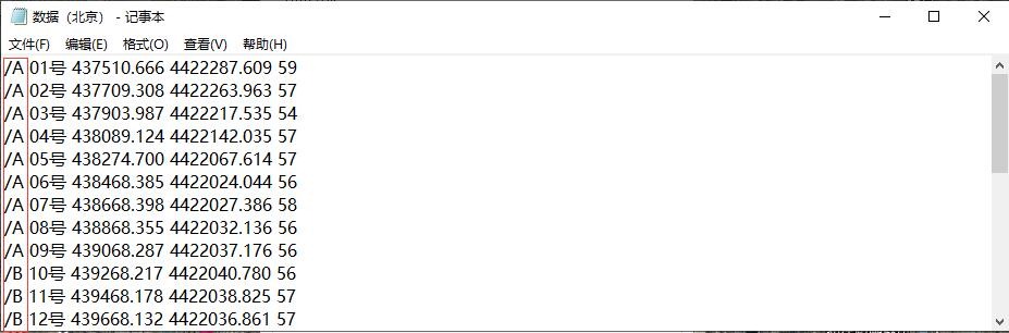 (2)其次,按照奧維格式要求對TXT坐標(biāo)文件進(jìn)行編輯。