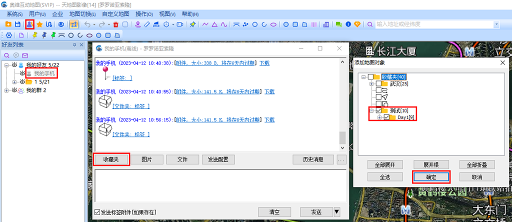 點(diǎn)擊數(shù)據(jù),點(diǎn)擊【收藏當(dāng)前對象】,選擇存放目錄,點(diǎn)擊【確定】,可將數(shù)據(jù)保存到手機(jī)端的收藏夾中,同時數(shù)據(jù)會顯示在地圖上。