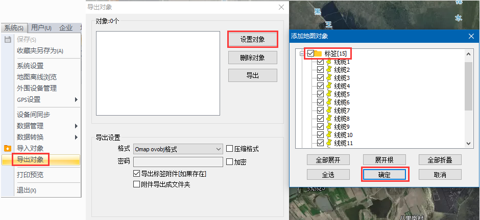 點(diǎn)擊[系統(tǒng)]菜單,點(diǎn)擊【導(dǎo)出對(duì)象】按鈕,點(diǎn)擊【設(shè)置對(duì)象】按鈕,批量勾選需要導(dǎo)出的對(duì)象,點(diǎn)擊【確定】按鈕。