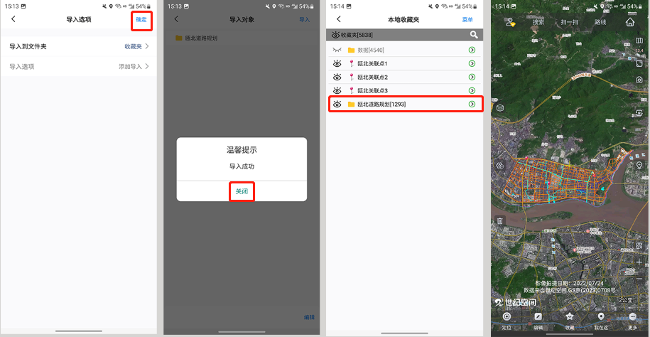 點擊【確定】,系統(tǒng)執(zhí)行導(dǎo)入文件;導(dǎo)入完成后,數(shù)據(jù)會保存在收藏夾中,顯示在地圖上。