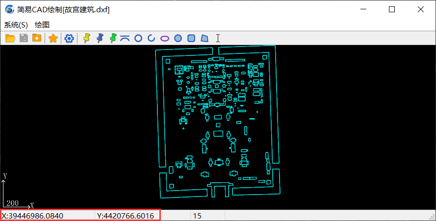 這里我們也可以用奧維的簡易CAD窗口打開CAD文件查看平面坐標,關(guān)于簡易CAD的功能介紹請參考幫助文檔《簡易CAD繪制功能使用說明》。