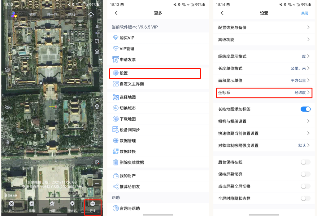 在手機端主界面點擊【更多】→【設(shè)置】→【坐標系】。