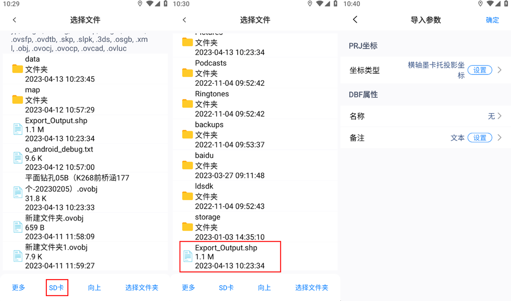 ★注意:.shp、.shx、.prj和.dbf四個同名文件要一起保存在手機上,否則無法正常導入。