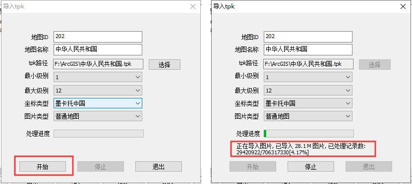 設(shè)置完成后,點(diǎn)擊【開始】,系統(tǒng)執(zhí)行導(dǎo)入地圖。