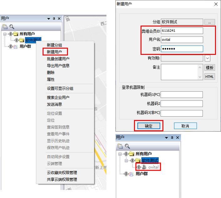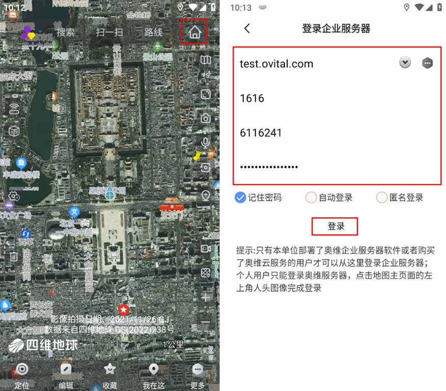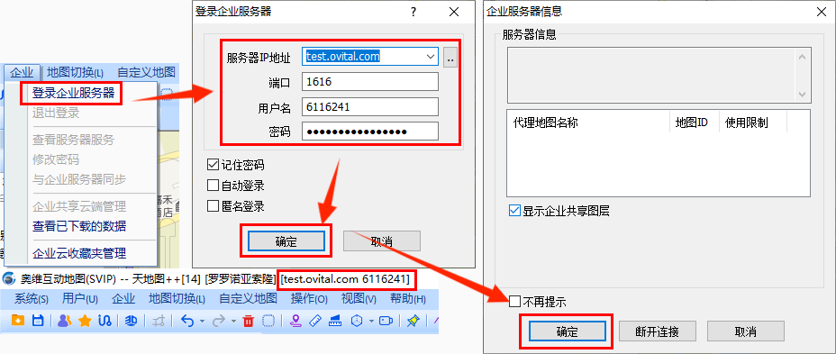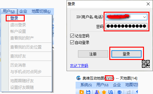 將用戶添加到企業(yè)服務(wù)器(或者奧維云服務(wù))中后,就可以在客戶端(奧維互動地圖)中登錄企業(yè)服務(wù)器。