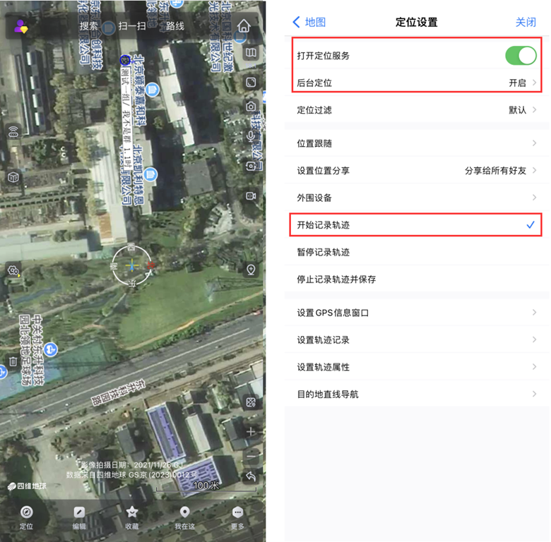 然后點擊主界面的1按鈕,打開定位服務(wù)和后臺定位,點擊【開始記錄軌跡】。您在走動的過程中,就可以開始記錄軌跡,并顯示在地圖上。
