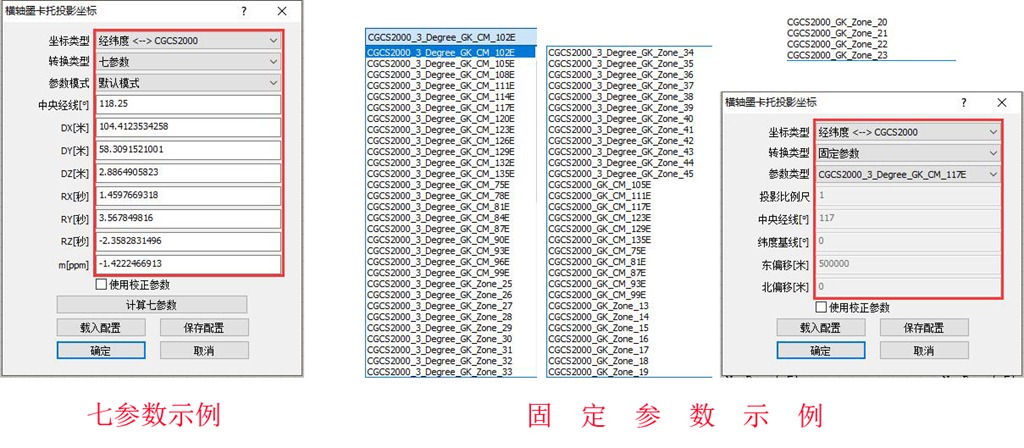 坐標(biāo)類型:您可以根據(jù)實(shí)際需要選擇【經(jīng)緯度<——>北京54】【經(jīng)緯度<——>西安80】【經(jīng)緯度<——> CGCS2000】【經(jīng)緯度<——> UTM】或者【經(jīng)緯度<——>自定義】,本文以CGCS2000為例。
