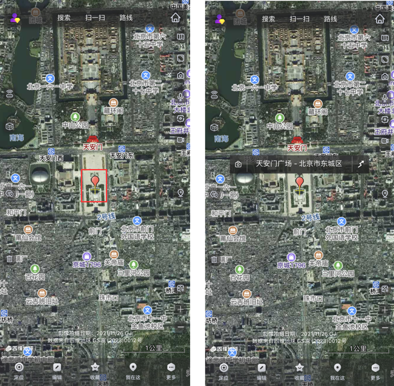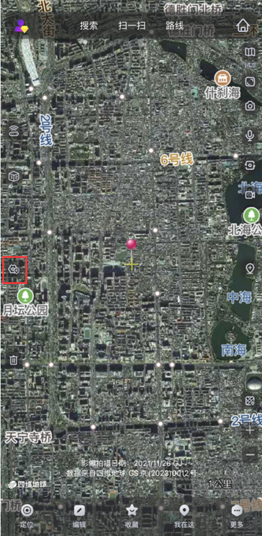 點(diǎn)擊左下角“定位”圖標(biāo),屏幕中心點(diǎn)即可回到當(dāng)前所在位置;