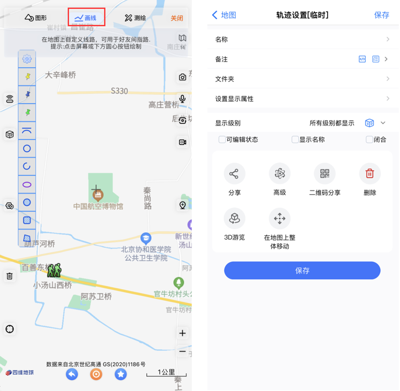 記錄軌跡:打開“后臺定位”,選擇“開始記錄軌跡”,即可記錄行動(dòng)軌跡,結(jié)束時(shí)選擇“停止記錄軌跡并保存”,同時(shí)關(guān)閉“后臺定位”(否則耗電大)