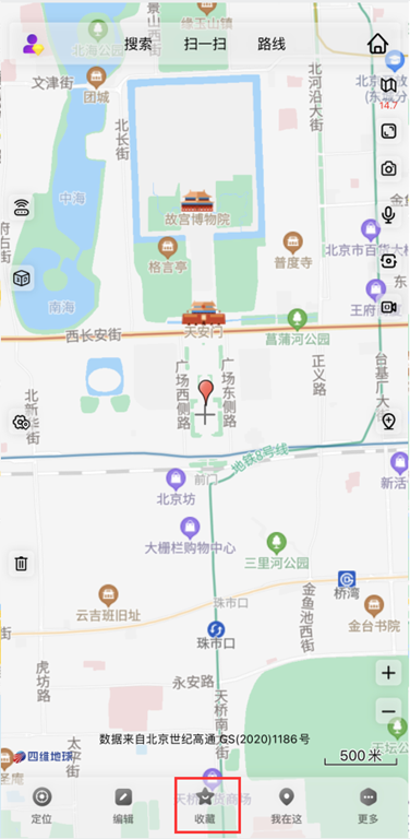 點(diǎn)擊“掃一掃”,即可掃描他人的二維碼信息,從而得到他人制作的自定義地圖、標(biāo)記、軌跡(20個(gè)點(diǎn)以內(nèi))、圖形等信息。