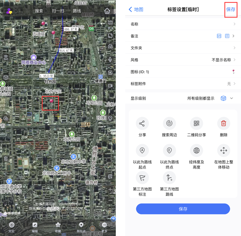 雙擊標(biāo)簽,進(jìn)入“標(biāo)簽設(shè)置”,在頁面下方選擇第三方地圖標(biāo)注或者第三方地圖路線,即可使用第三方地圖進(jìn)行導(dǎo)航