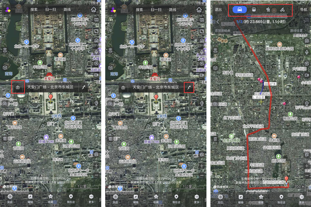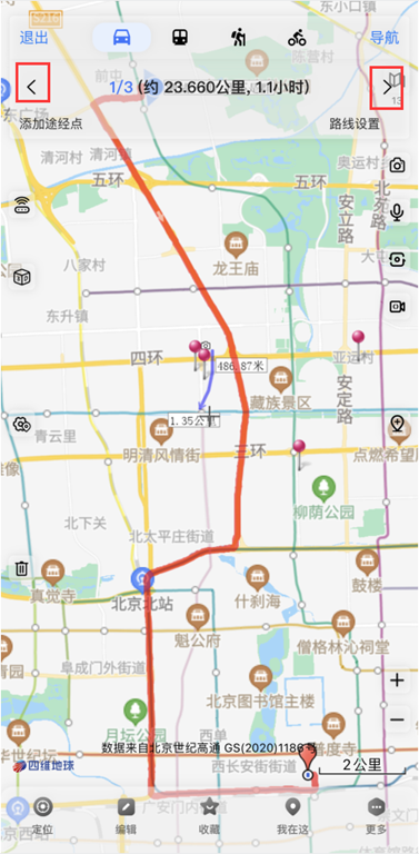 b、劃動(dòng)地圖,將途徑點(diǎn)定位在屏幕中間“+”位置,點(diǎn)擊屏幕下方的”20230303094036“圖標(biāo),則選擇“+”所在位置為途經(jīng)點(diǎn)