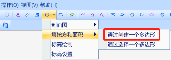 點(diǎn)擊工具欄圖片12按鈕—>【挖填方和面積】—>【通過選擇一個(gè)多邊形】,選擇一個(gè)多邊形,點(diǎn)擊【確定】。