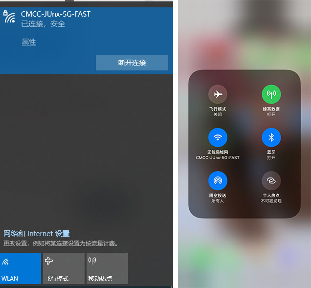 首先確保我們的設(shè)備在同一網(wǎng)絡下,這里演示電腦和手機連接到同一個無線網(wǎng)絡。