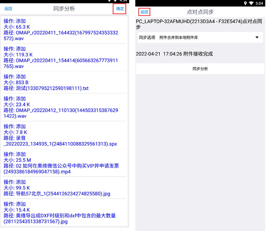 手機端點擊【確定】,完成后,您可以點擊【返回】,退出點對點同步。