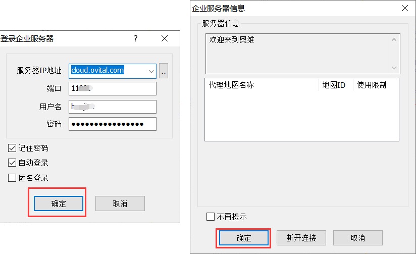 奧維服務(wù)器認(rèn)證:當(dāng)奧維客戶端連接該云服務(wù)器時,需要輸入奧維 VIP 用戶的對應(yīng)的用戶名和密碼。