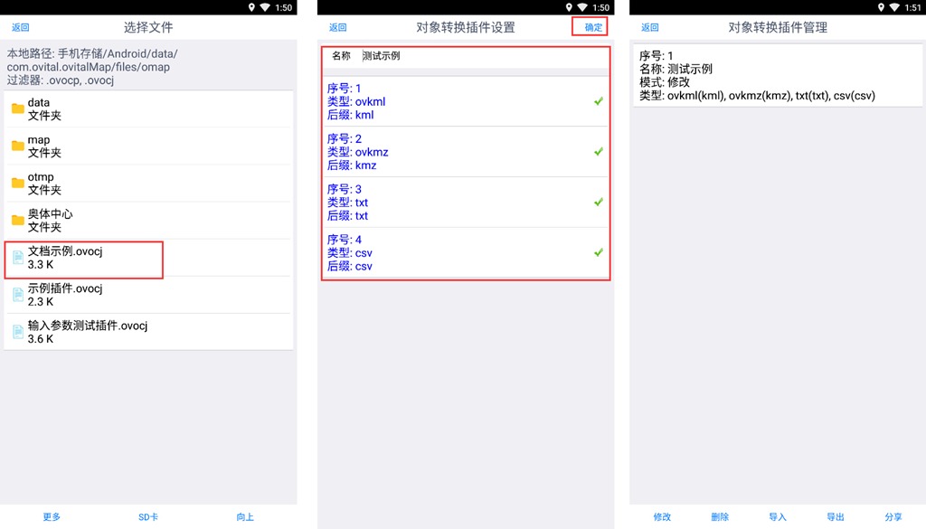 在對象轉(zhuǎn)換插件管理窗口,我們可以進(jìn)行修改、刪除、導(dǎo)入、導(dǎo)出、分享等操作。操作方法與電腦端相同,這里我們不再贅述。