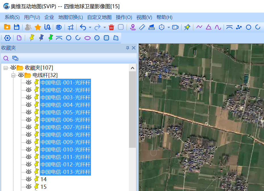 奧維PC版客戶端軟件支持給收藏夾的子文件、標(biāo)簽、軌跡、圖形、線路進(jìn)行批量高級(jí)重命名,包括批量給名稱添加自定義的前綴、后綴、編號(hào)(編號(hào)位數(shù)和遞增量可設(shè)置),批量替換(按內(nèi)容或按位置)名稱中的部分文字;下面以通信行業(yè)為例進(jìn)行操作說(shuō)明: