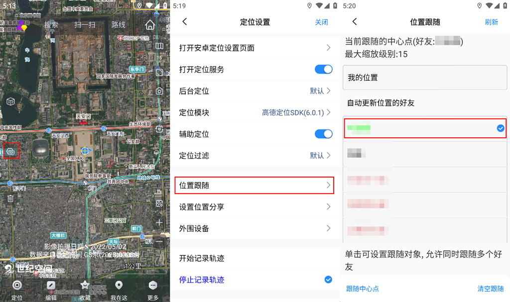 下面我們來演示一下如何設(shè)置好友位置跟隨。
