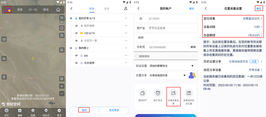 B.點擊[用戶]→【賬戶設(shè)置】→【位置采集設(shè)置】;