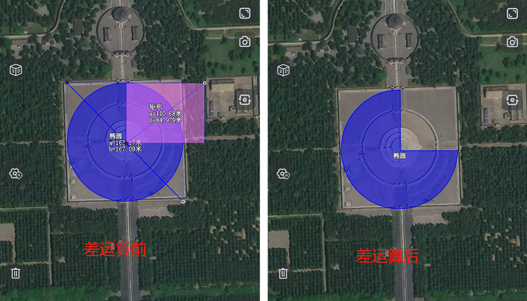 在奧維互動地圖中,可以實現(xiàn)將一個圖形分割成兩個圖形,也可以對多個符合相應(yīng)條件的圖形進行合并、交集、差、異或拓撲運算。