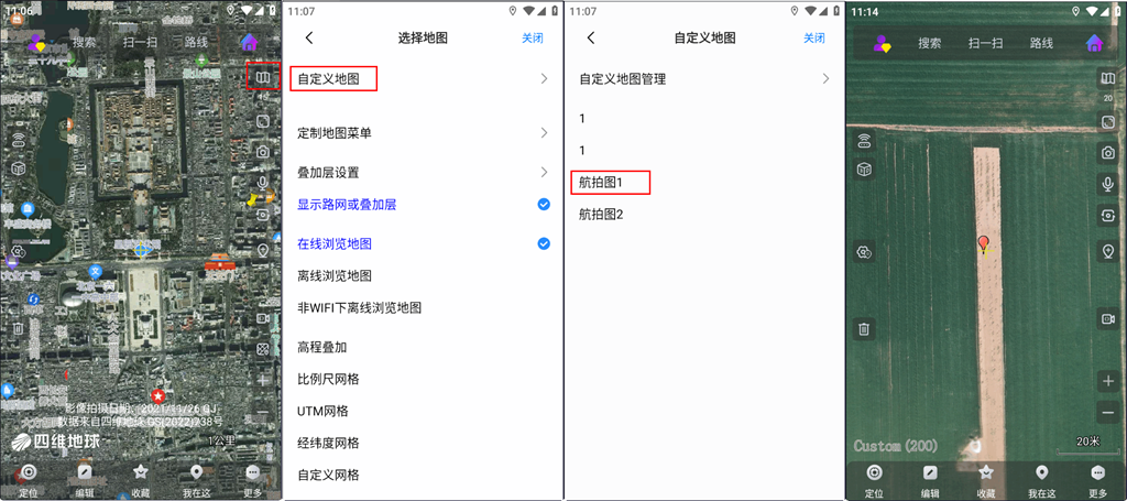 掃描完成后,點(diǎn)擊右上角的圖片1按鈕,點(diǎn)擊【自定義地圖】,勾選您需要看的地圖,即可瀏覽。